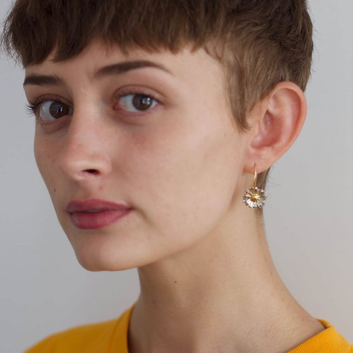Alex Monroe Big Daisy Hook Earrings Silver and Gold