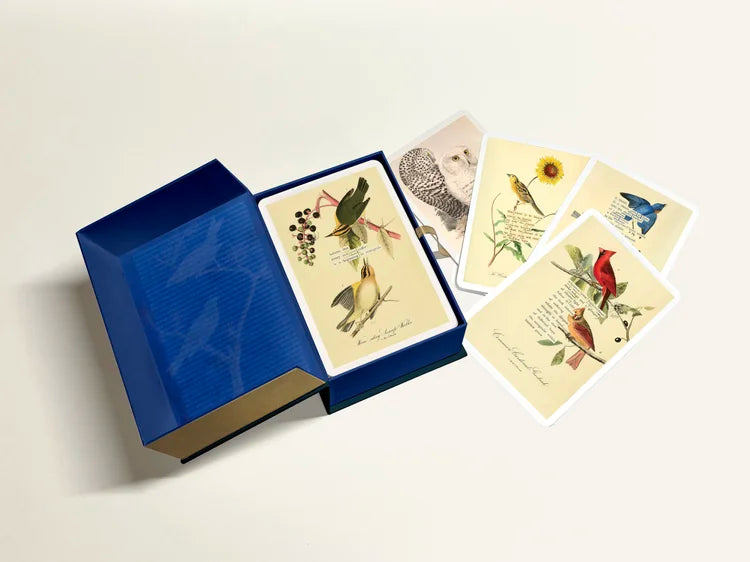 Originally intended as a gift to her friends for her fortieth birthday, she set out to create a sort of avian alternative to tarot—a deck of cards less for telling the future than for making sense of the present, for finding grace in the complexities and confusions of our human lives. Each night before sleep, she chose a single bird to work with from a favorite 19th-century ornithological book—from John James Audubon’s Birds of America to John and Elizabeth Gould’s Birds of Europe—letting her wakeful mind seize a handful of words and phrases from the page, then handing them over to her unconscious to wrestle with in the land of dreams. Each morning, she would read over the text and a kind of message would come to enflesh the skeleton of the noted words—not a poem, not a prescription, but a way of eavesdropping on the conversation between logic and intuition, between knowledge and mystery, between the part of us that already knows how to live through any perplexity and the part that forgets in the overwhelming act of living.