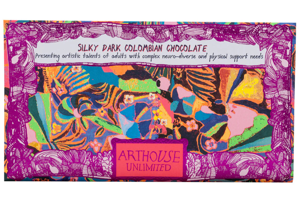 This silky dark Colombian chocolate bar is a delight for dark chocolate connoisseurs everywhere. Made in the UK with responsibly sourced cocoa this bar features Psychodelia, an artwork created by artist Laura Tregellas and presented in a dazzling purple frame. Wrapped in coloured foil & encased in a recyclable envelope. An ideal gift for chocoholics, art lovers & good-cause supporters everywhere!