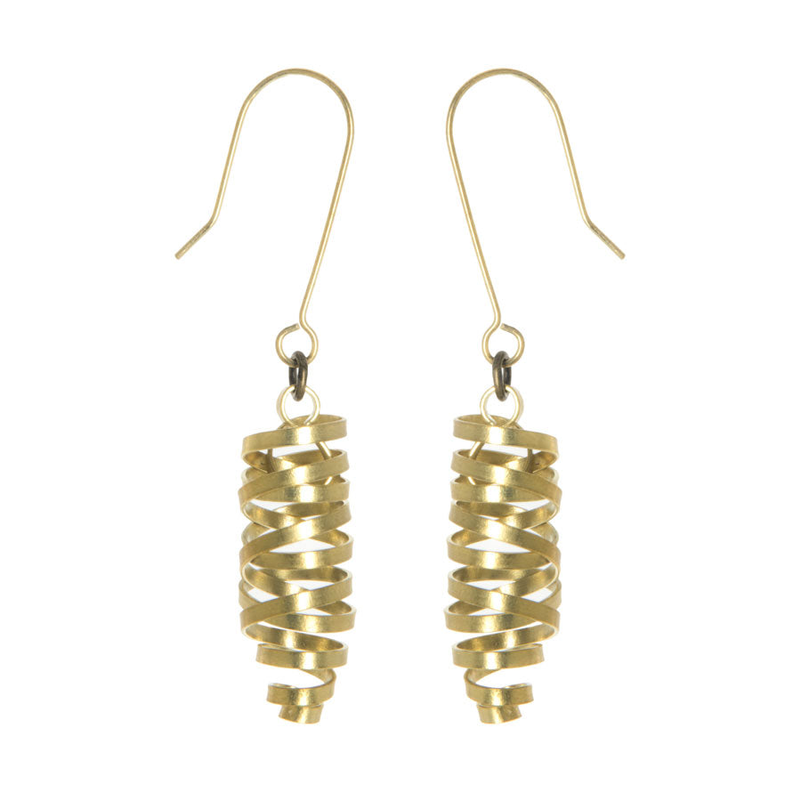 Subtly textured ribbons of golden coloured brass are wound and twisted to make these gorgeous handmade spiral earrings.