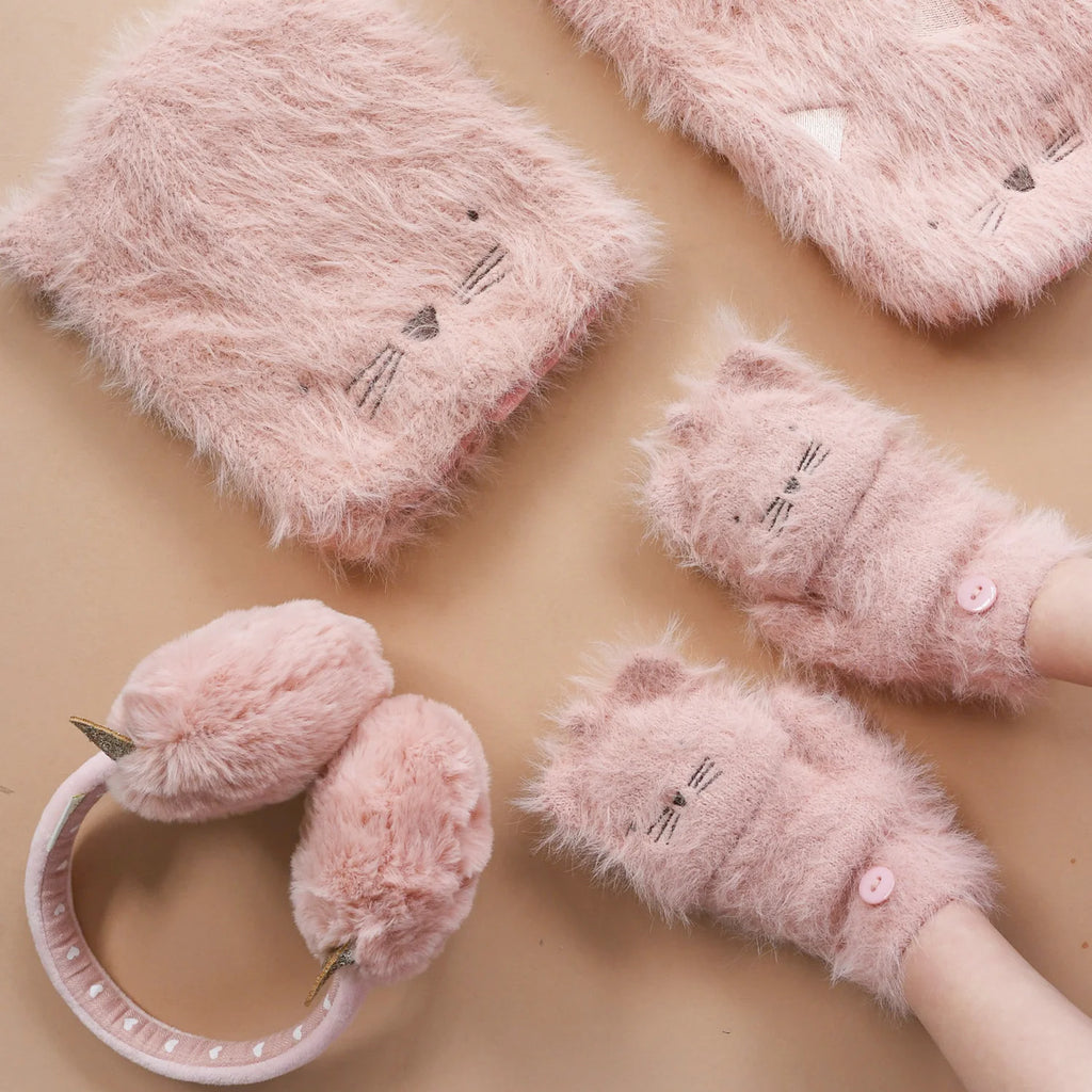 These sweet and cosy earmuffs are the purrr-fect way to keep little ears warm this winter! Made with super soft faux fur, each side has a sweet little pair of sparkling cat ears and a cute embroidered cat face.