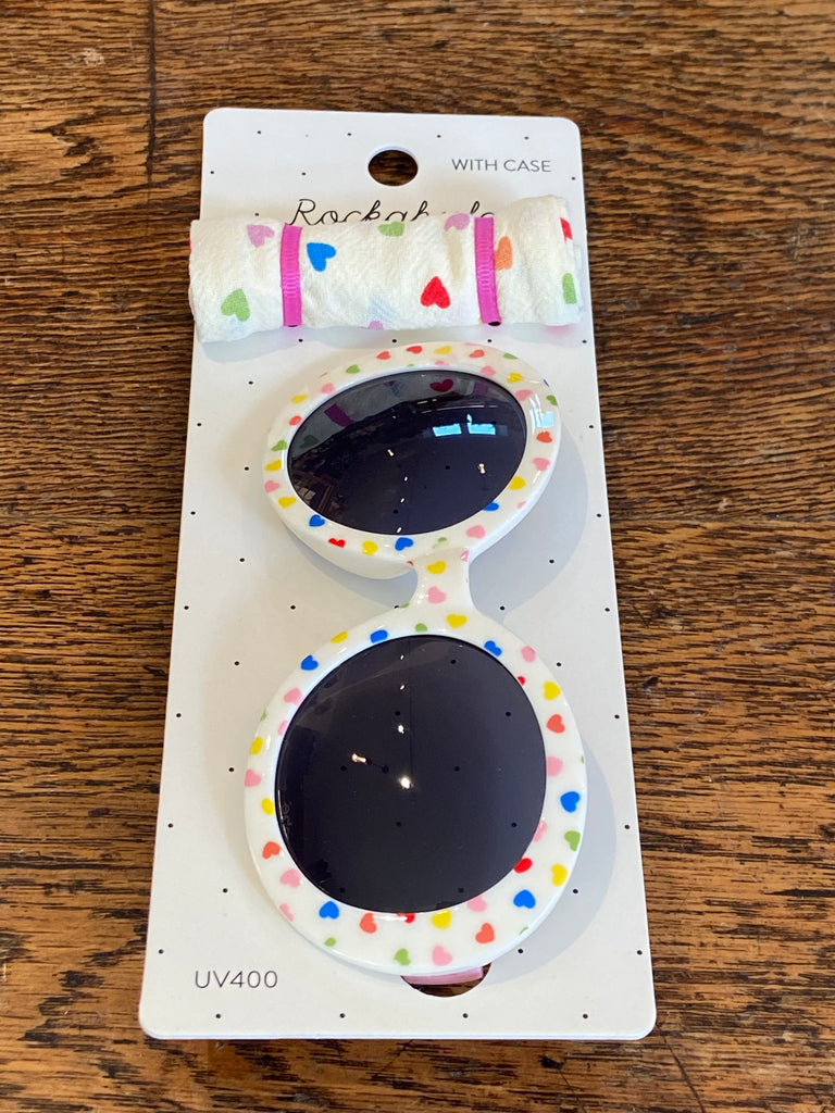 A pretty pair of sunglasses scattered with lovely hearts! The perfect sun shades for any summer adventure! Each pair comes with a protective cotton case and offers full UV protection.