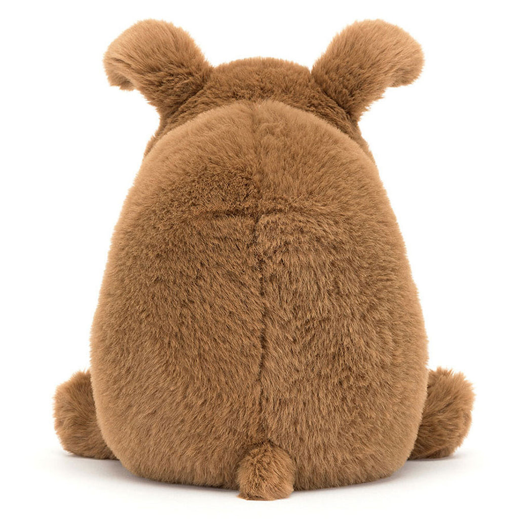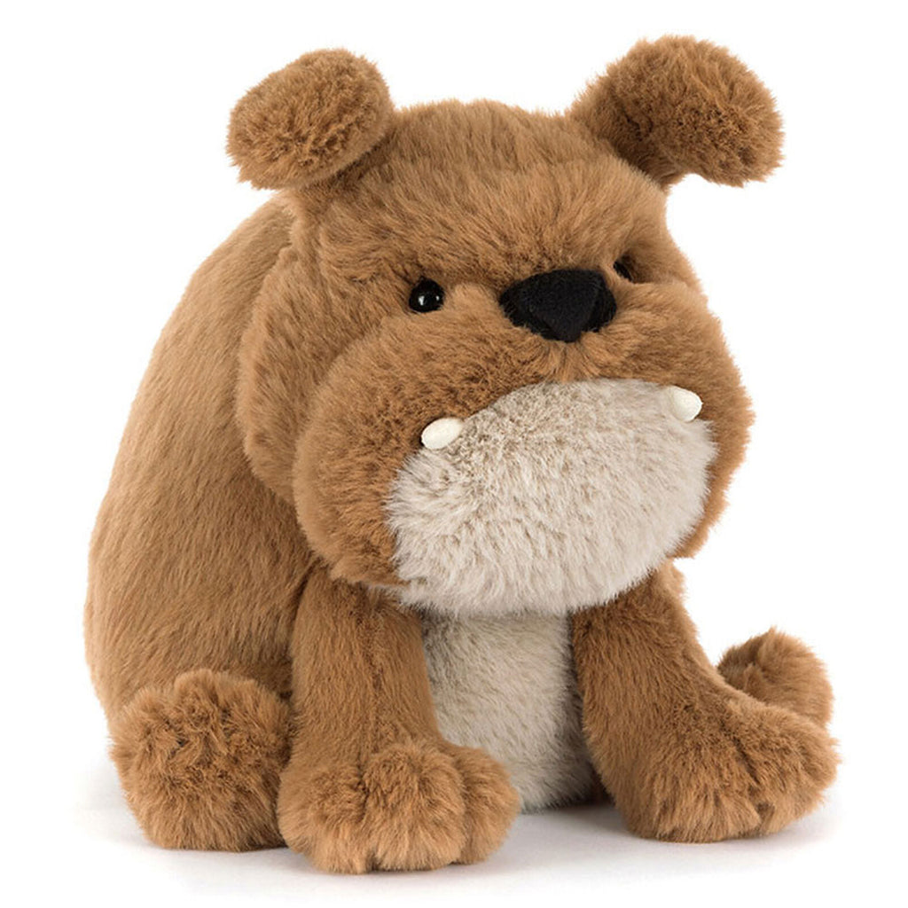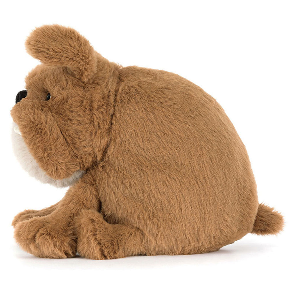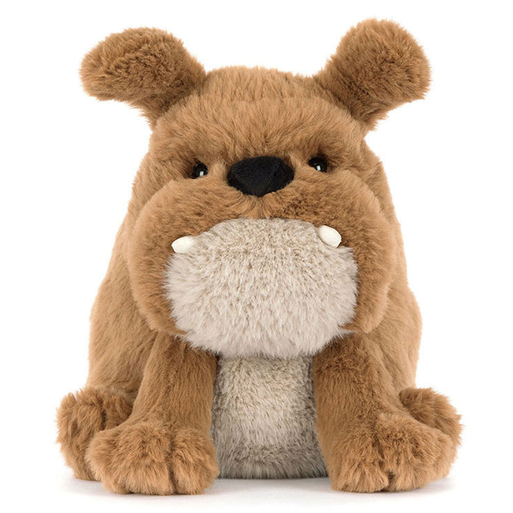 Derreck Dog may be frowning, but he’s really a super friendly fellow! Soft and squat in brown fur, Derreck has an oatmeal tummy perfect for belly rubs! With a grumpy face complete with stitched frown and cream suedette teeth, this darling dog is the perfect social companion to bring a little joy to every journey!