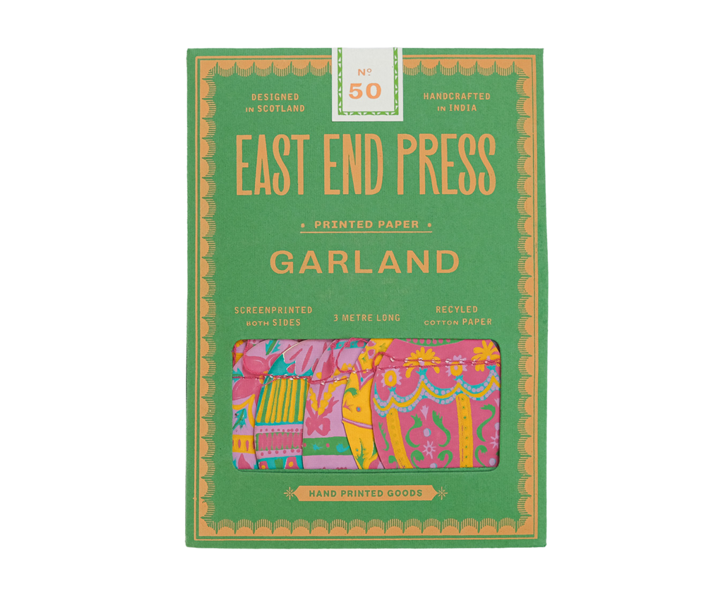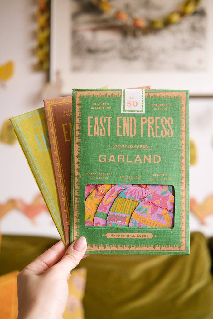 Celebrate Easter with this egg themed garland, with twenty little decorative eggs in Spring colours sewn along the three metre length. 3 metres long - Includes 10 paper shapes, sewn along strong cotton thread - Screen printed by hand on both sides by talented artisans in Jaipur - Sustainably made from recycled materials
