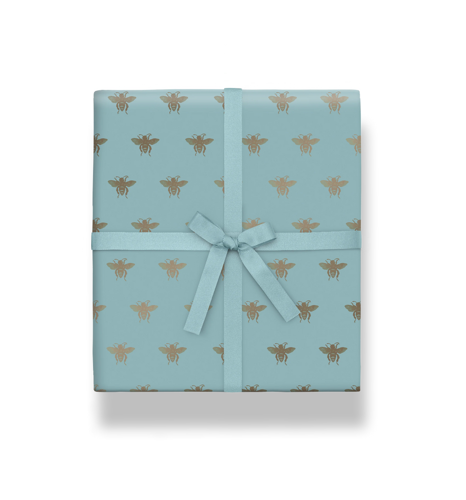 Honey Bee Blue Foiled Roll Wrap, 3 Metres By Lagom Design