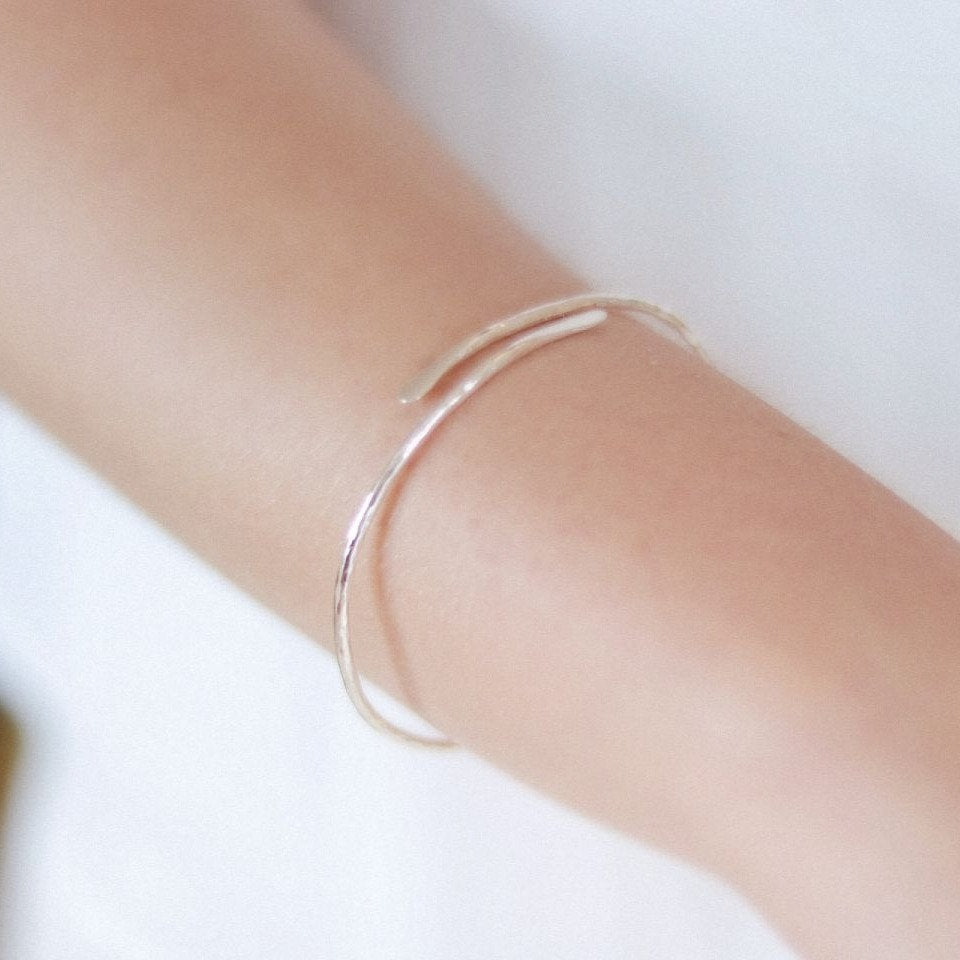 These bangles are handmade from brass wire and planished using a specialist hammer to give it texture. Either silver plated or 22ct gold plated in the UK.