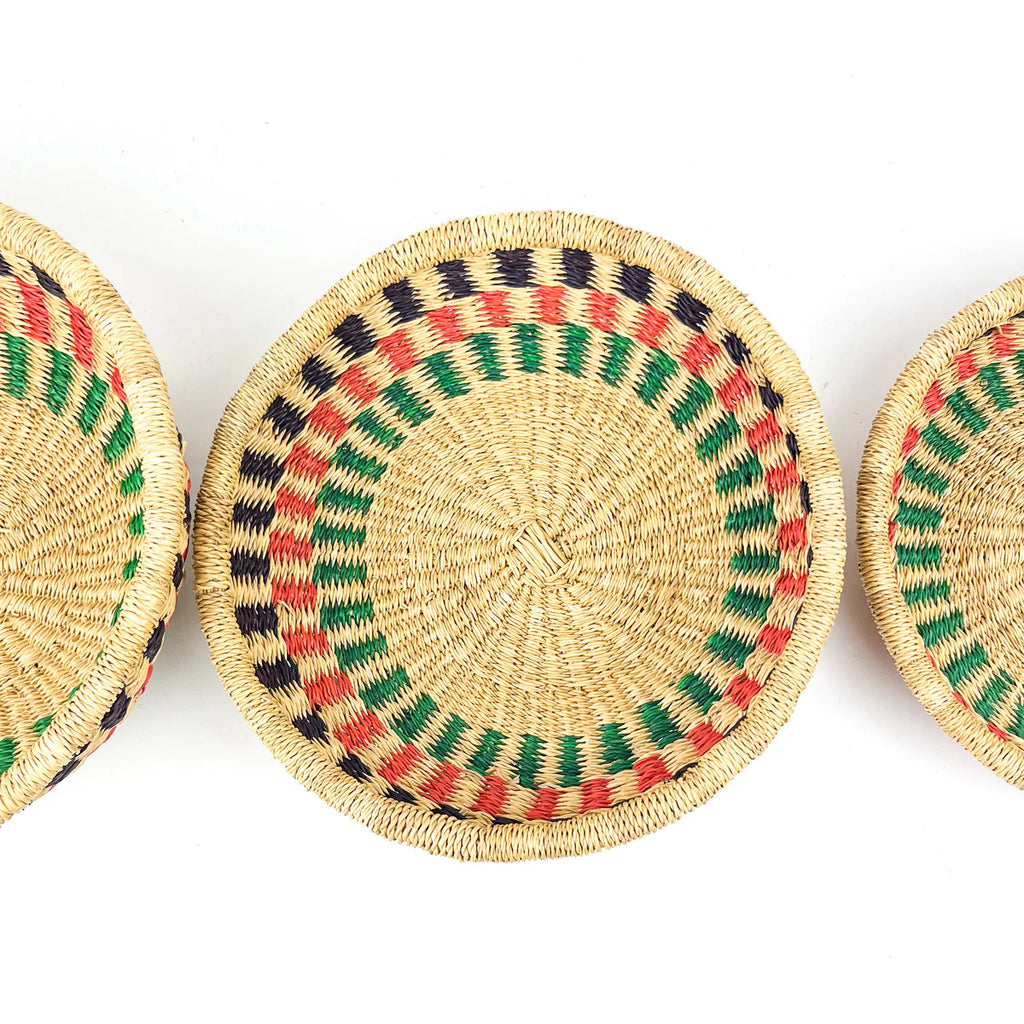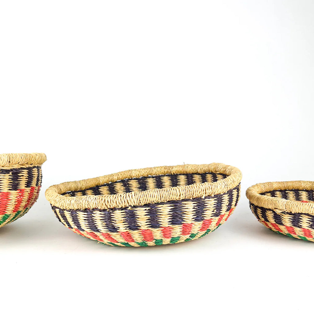 These handwoven shallow bowls are perfect for holding keys, fruit, or simply adding a splash of colour to your space. Available in small, medium, and large, they’re as practical as they are tasteful. Made by artisans in Ghana, supporting sustainability and community craftsmanship.