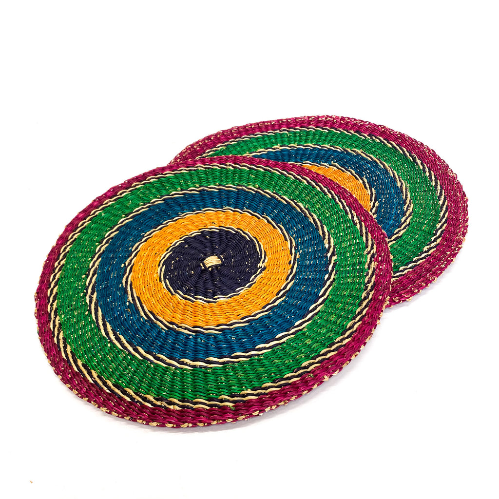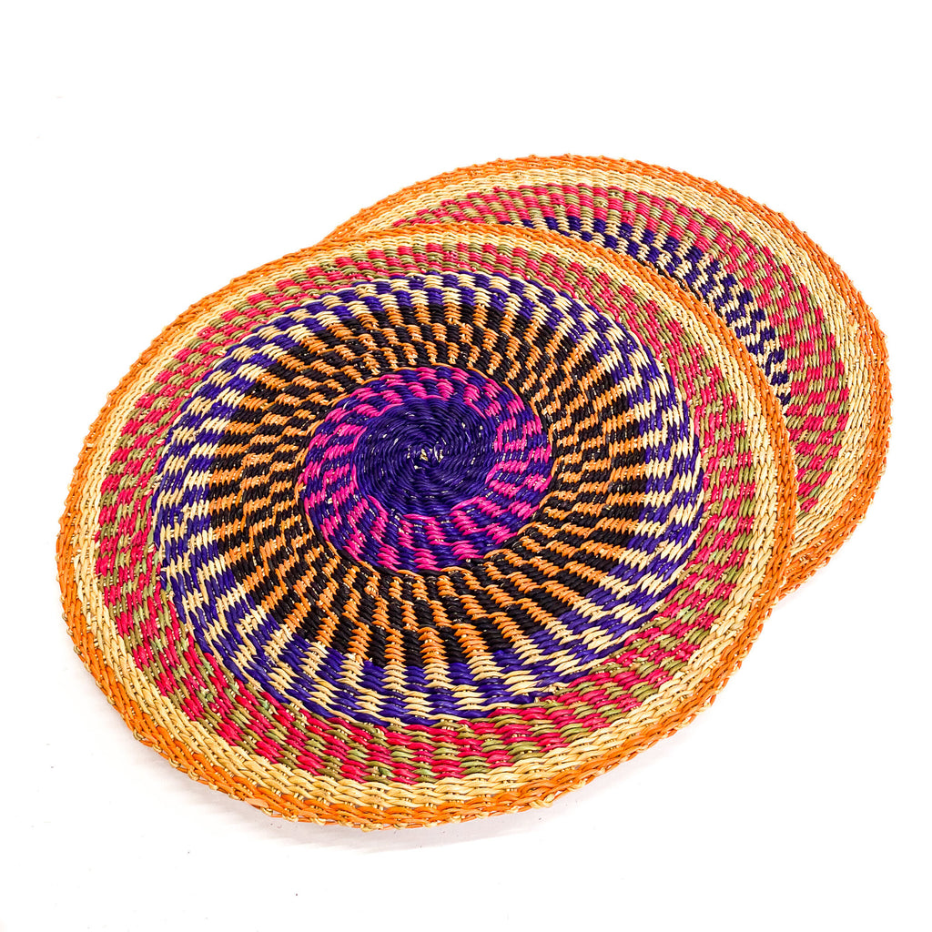 Handwoven placemats from Bolga, Ghana. Each mat in a set has the same design; however, if you order multiple sets, each set will be different.