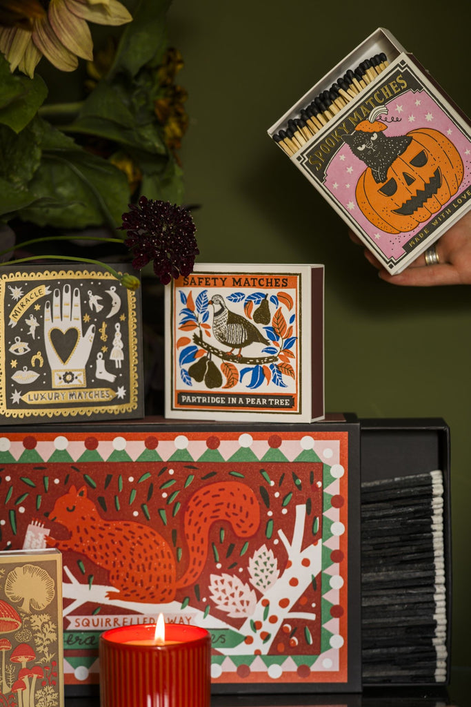 Striking in every sense – these matchboxes are filled with 125 matchsticks ready to spark a little joy. Designed to add character to coffee tables, mantelpieces, and gift drawers, each box is a blend of function and flair.