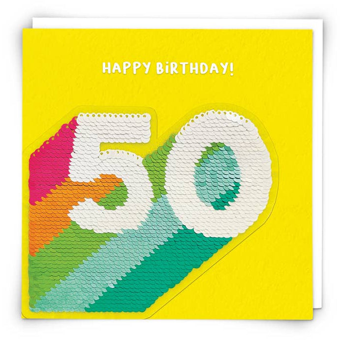 Stripe 50 Greetings Card with Reusable Sequin Patch By Redback