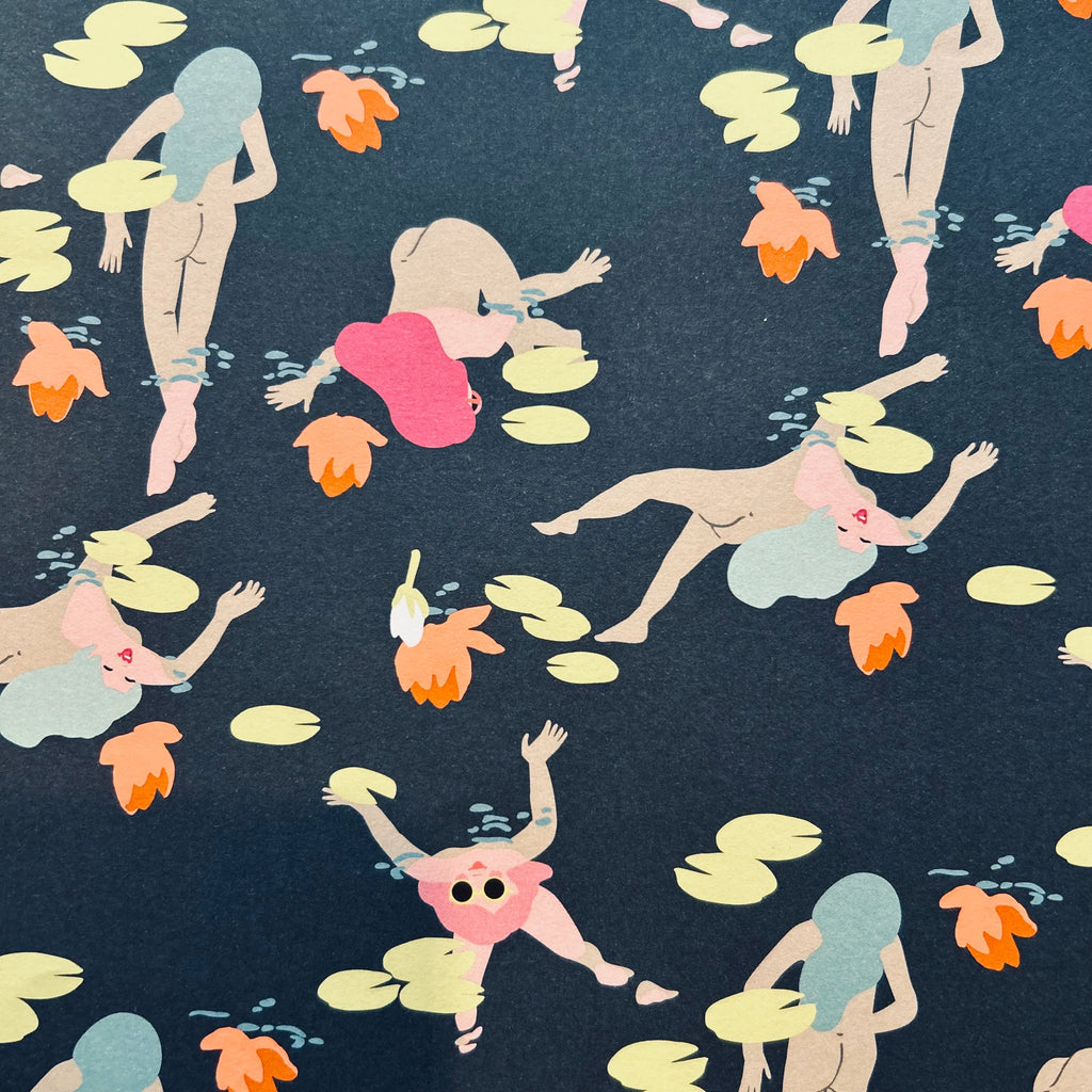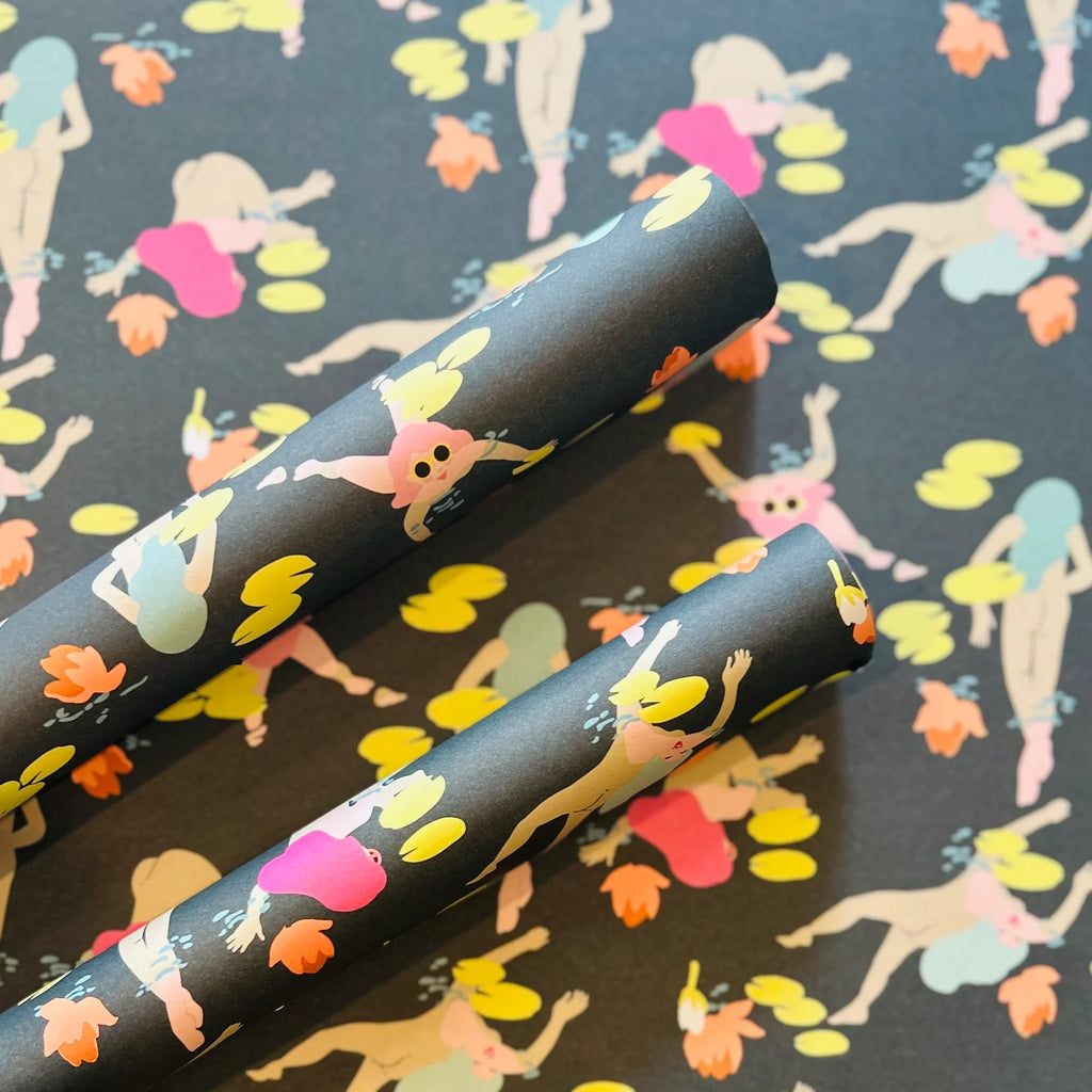 Wild and free swimmers dipping at night, sheet of wrapping paper; perfect for that free spirt in your life!